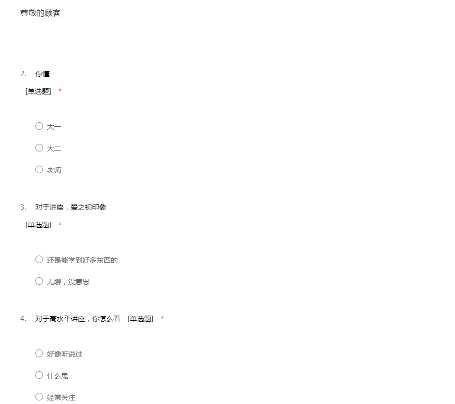 关于高水平讲座的调查问卷