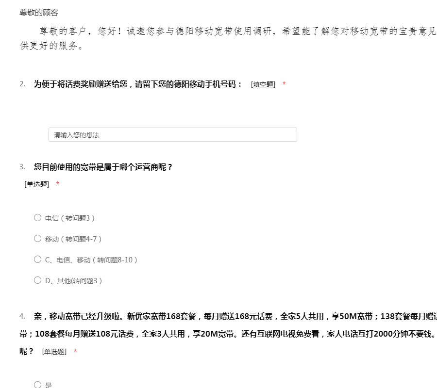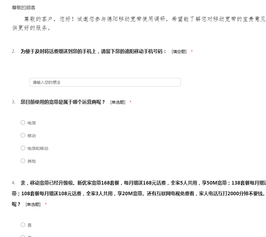德阳移动宽带使用情况调研——微信公众平台调查问卷