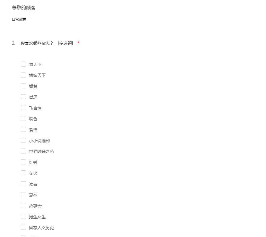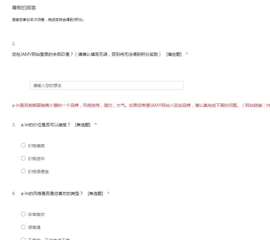 关于新品牌以及JAMY网上架其他类目相关问卷