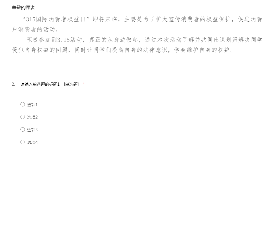 您好!为更好的了解我校的办学水平,了解家长对教育的需求,进一步提高服务质量,我们真诚邀请您参与我们的问卷调查(不记名调查),您的意见和建议是我们不断进步的永恒动力!