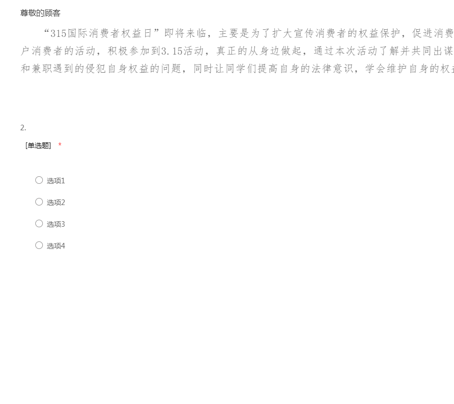 “315国际消费者权益日”即将来临,主要是为了扩大宣传消费者的权益保护,促进消费者的合作和交往,推动保护户消费者的活动, 积极参加到3.15活动,真正的从身边做起,通过本次活动了解并共同出谋划策解决同学们在日常生活和兼职遇到的侵犯自身权益的问题,同时让同学们提高自身的法律意识,学会维护自身的权益。