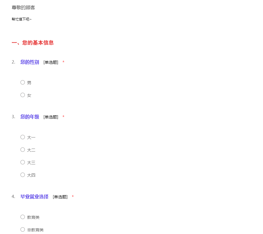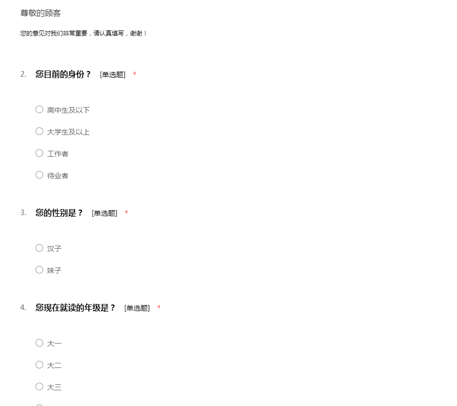 本次问卷调查意在了解当代大学生的恋爱实际情况,您的真实回答对我们来说十分宝贵!感谢您在百忙之中回答此卷!51调查网(我要调查网)谢谢您的参与。