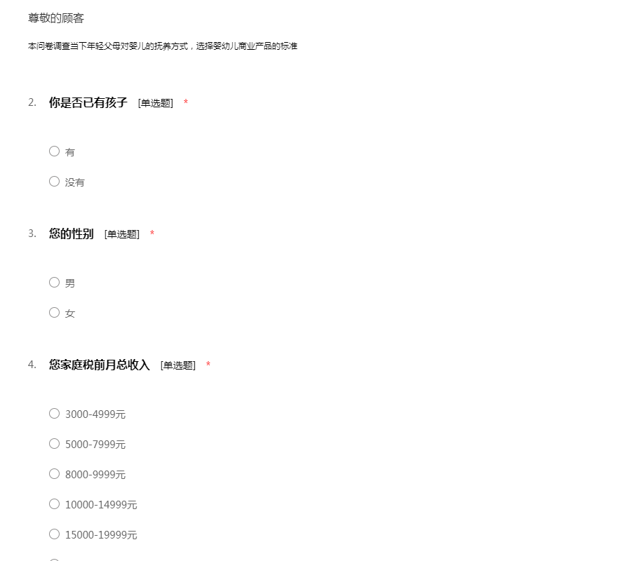 婴儿食品市场调查问卷