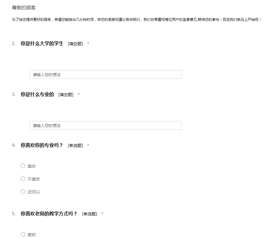 为了给您提供更好的服务,希望您能抽出几分钟时间,将您的感受和建议告诉我们,我们非常重视每位用户的宝贵意见,期待您的参与!现在我们就马上开始吧!