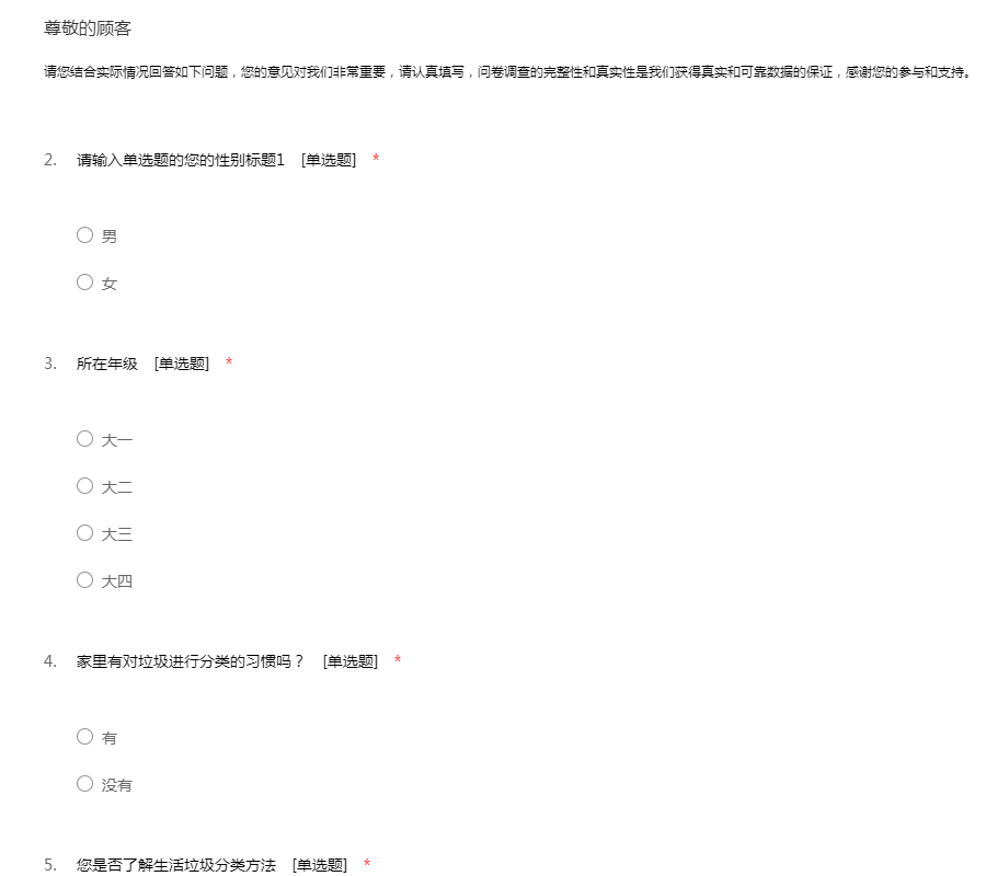 垃圾分类环保意识问卷调查