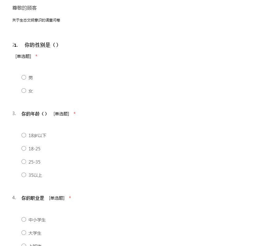 现在正在做一个关于环境的调查问卷!希望能占用您的一点宝贵时间填写关于环境的调查问卷!谢谢您的合作!祝您健康快乐每一天!