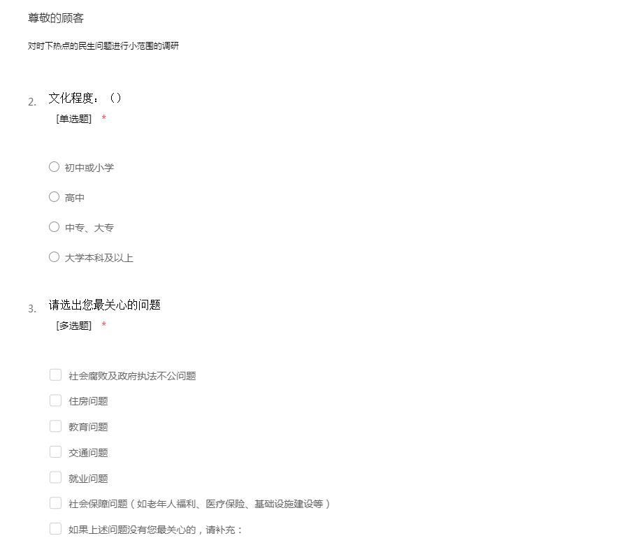 您好!这是一份关于当代青年价值观状况的调查问卷,希望占用你两分钟时间帮忙填一下,非常感谢!