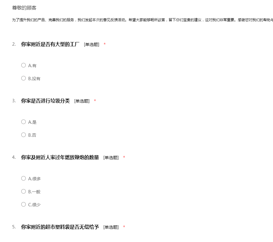 关于你的居住地环境问题的调查