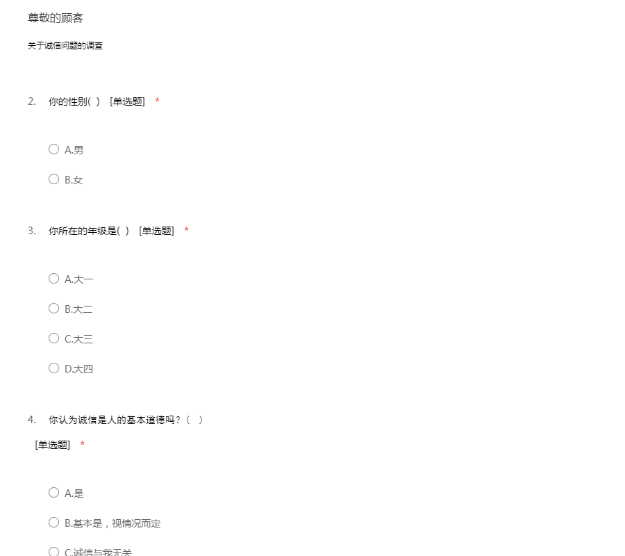 大学生诚信问题调查问卷
