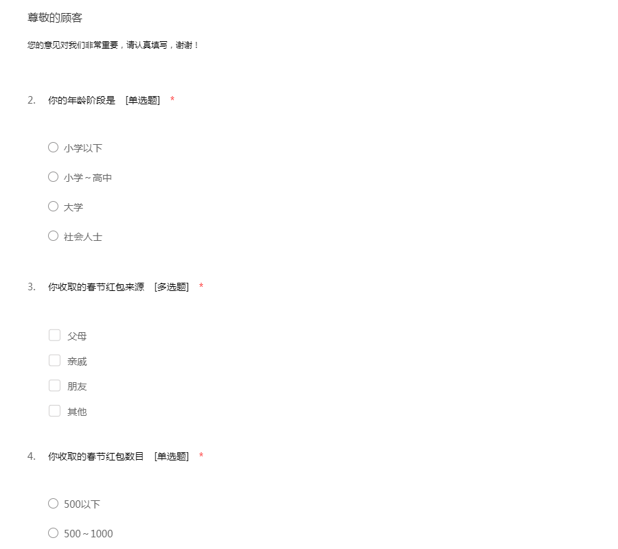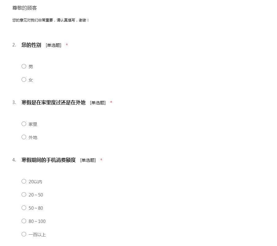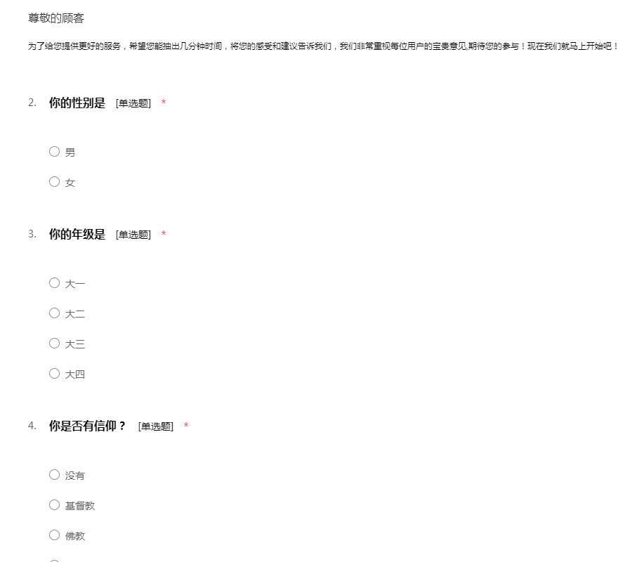 为了给您提供更好的服务,希望您能抽出几分钟时间,将您的感受和建议告诉我们,我们非常重视每位用户的宝贵意见,期待您的参与!现在我们就马上开始吧!