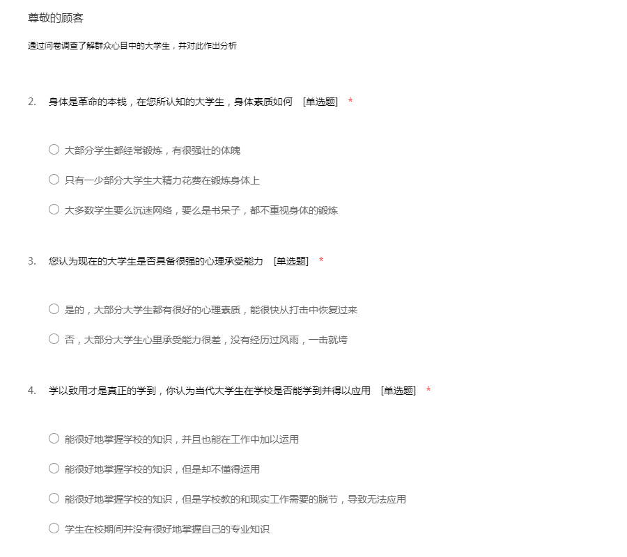 通过问卷调查了解群众心目中的大学生,并对此作出分析