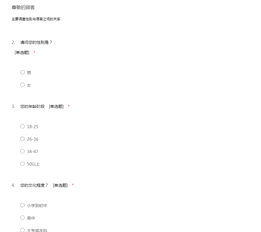 主要调查性别与语言之间的关系