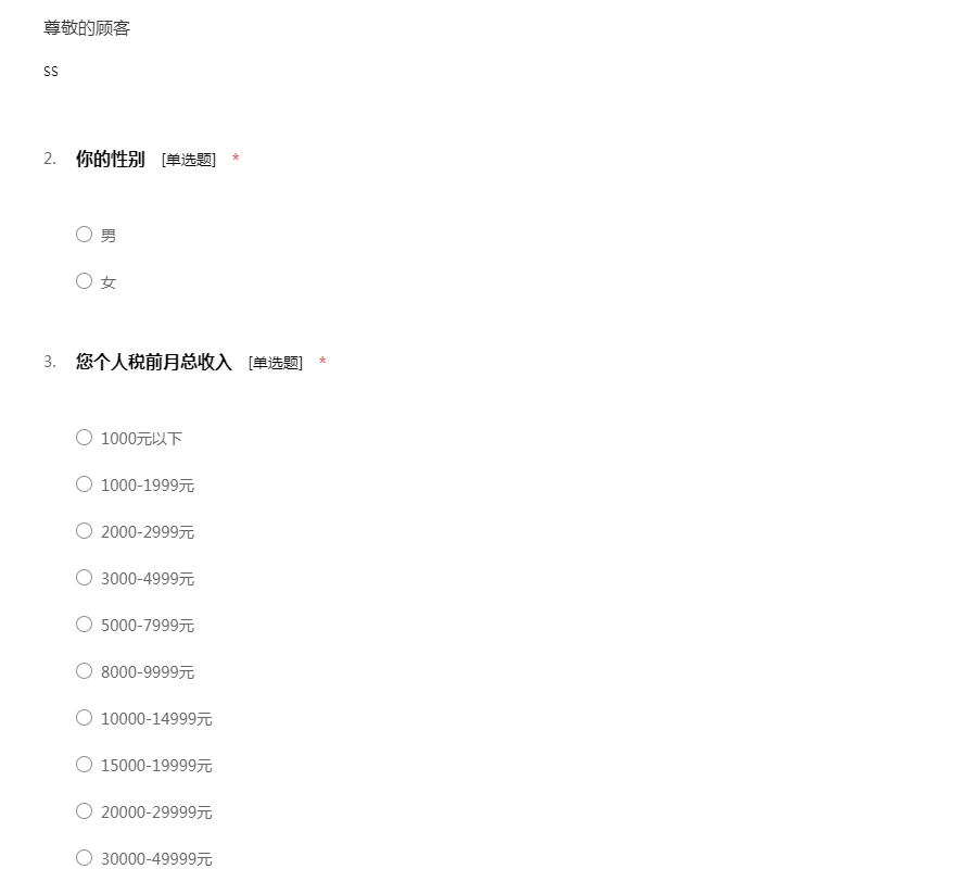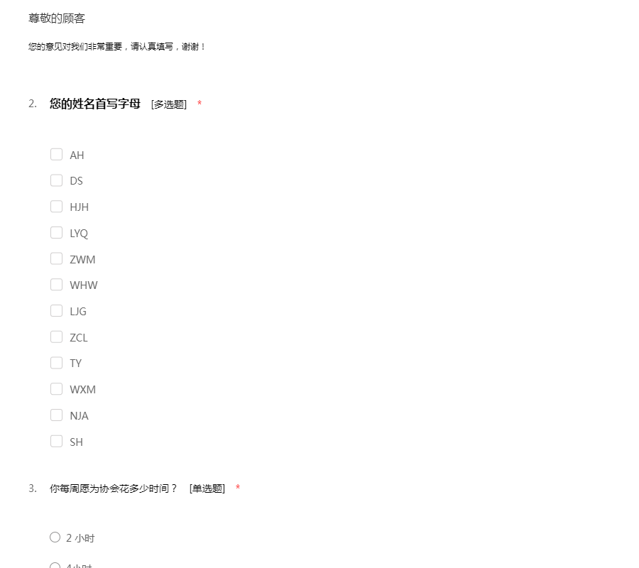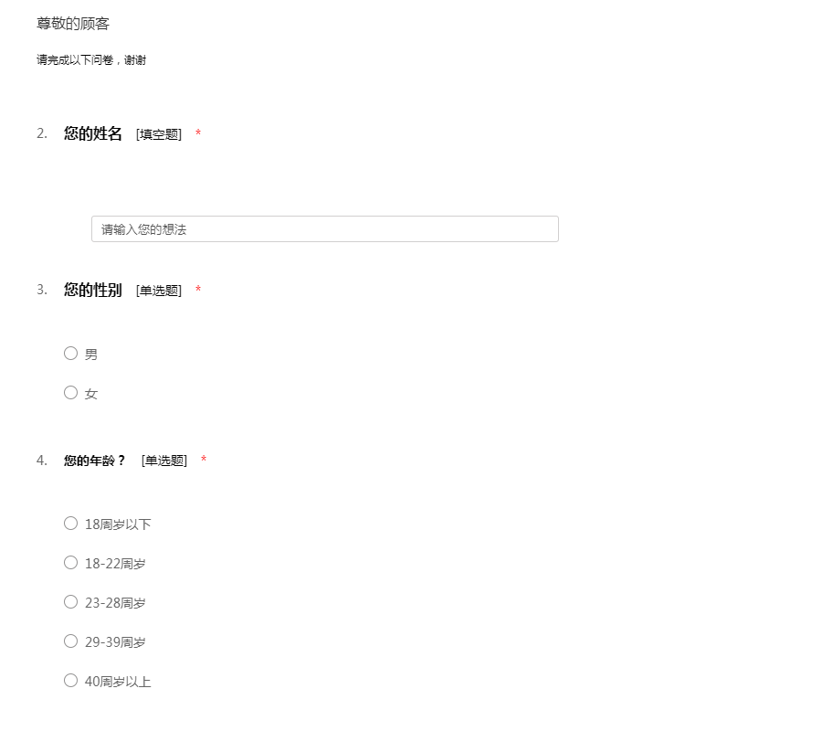 请完成以下问卷,谢谢