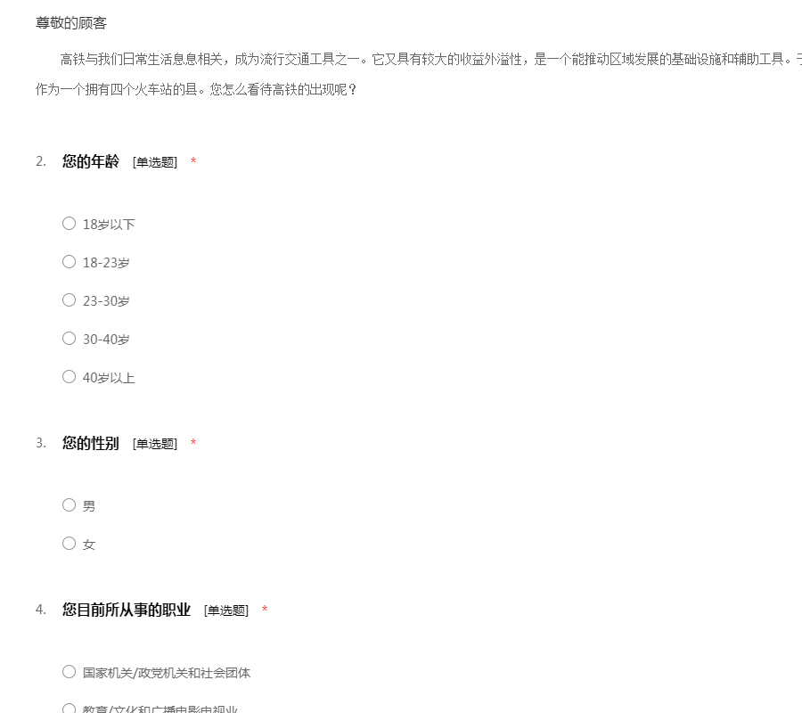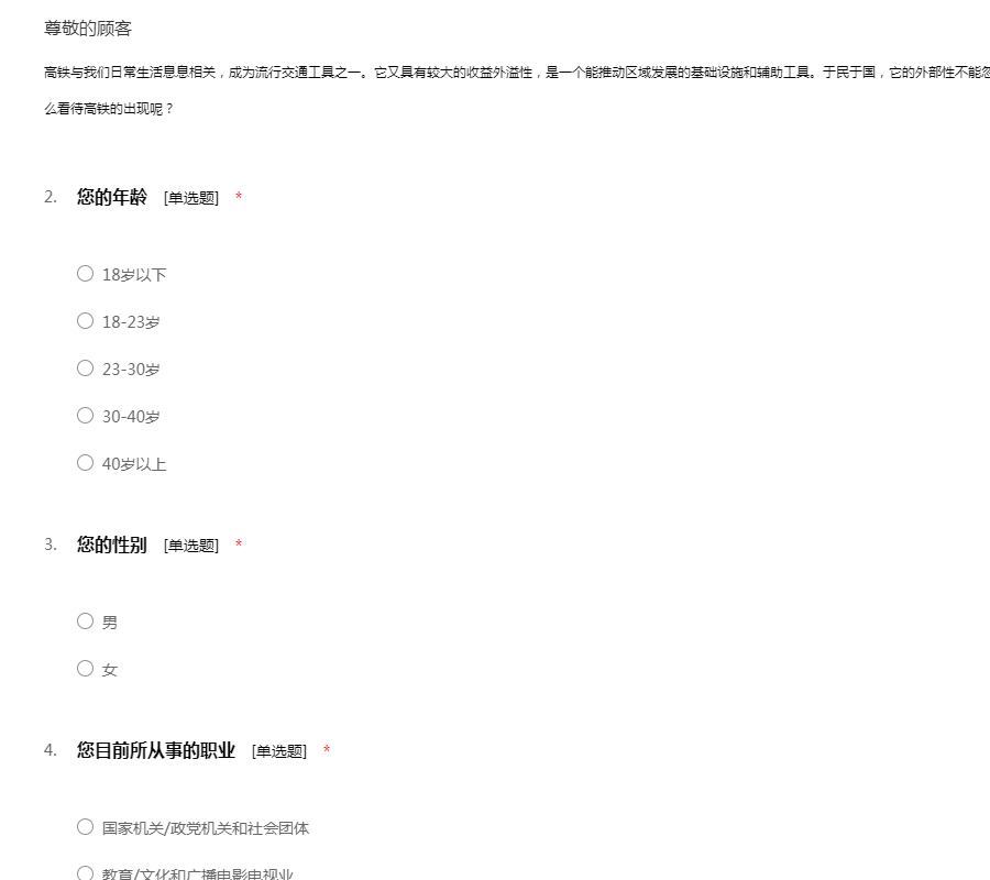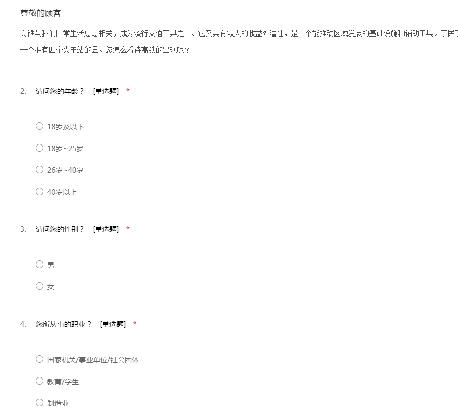 有关高铁影响的调查问卷