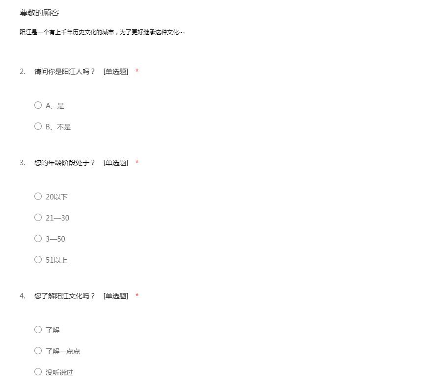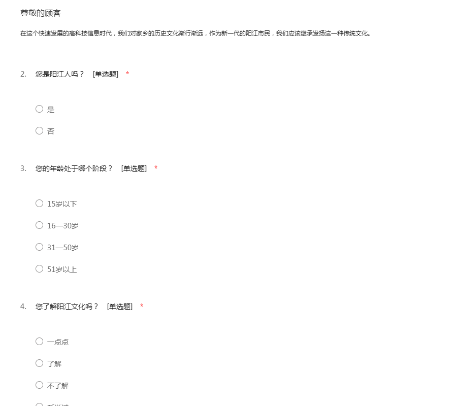 关于阳江文化的问卷调查
