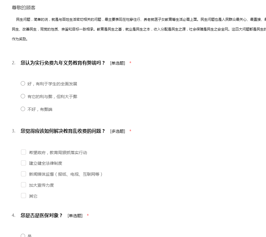民生问题调查问卷