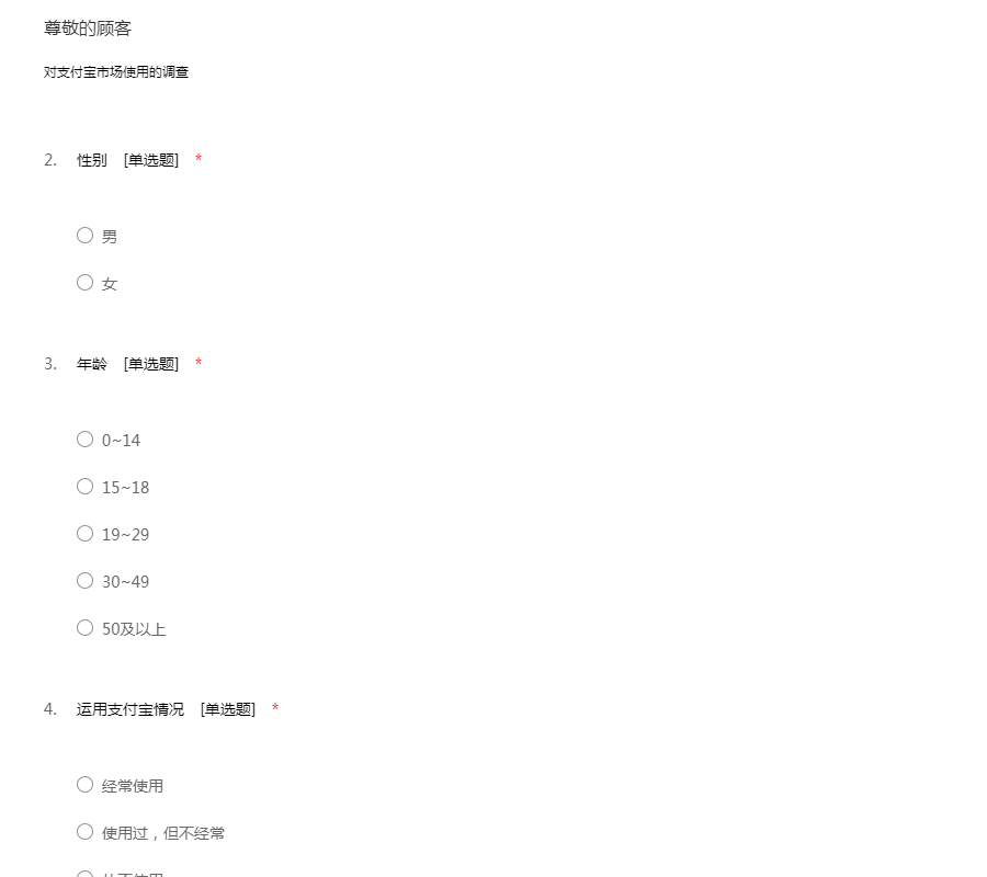 对支付宝市场使用的调查