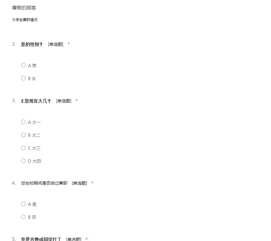 大学生兼职情况调查问卷