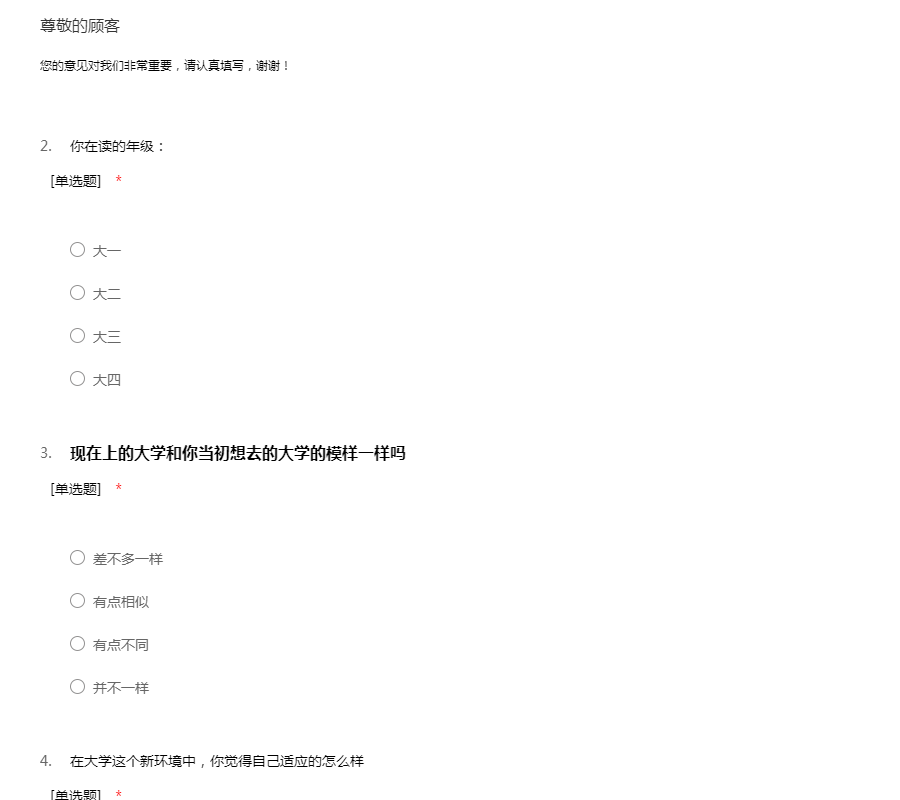 你好!为了更了解大学生对手机的依赖程度,以对手机有一个更深入的了解,我们特地展开了此次问卷。请您认真填写,我们谢谢你的积极配合!您的信息我们也会绝对保密!