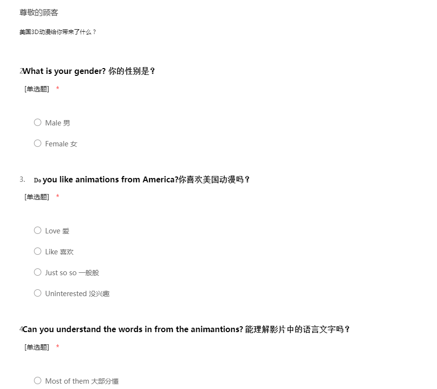 关于动漫的调查问卷