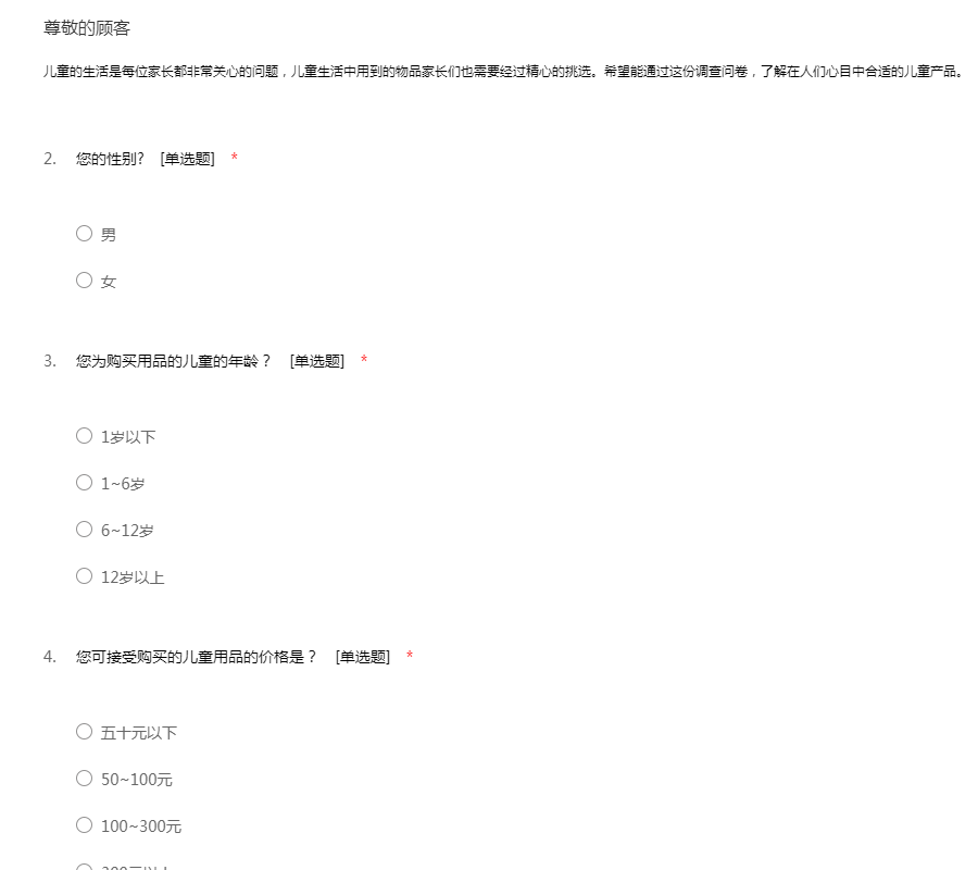儿童的生活是每位家长都非常关心的问题,儿童生活中用到的物品家长们也需要经过精心的挑选。希望能通过这份调查问卷,了解在人们心目中合适的儿童产品。