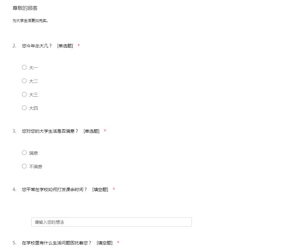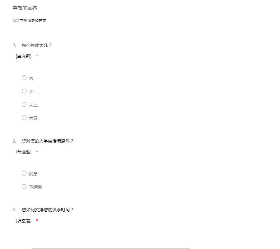 本次问卷调查意在了解当代大学生的恋爱实际情况,您的真实回答对我们来说十分宝贵!感谢您在百忙之中回答此卷!51调查网(我要调查网)谢谢您的参与。