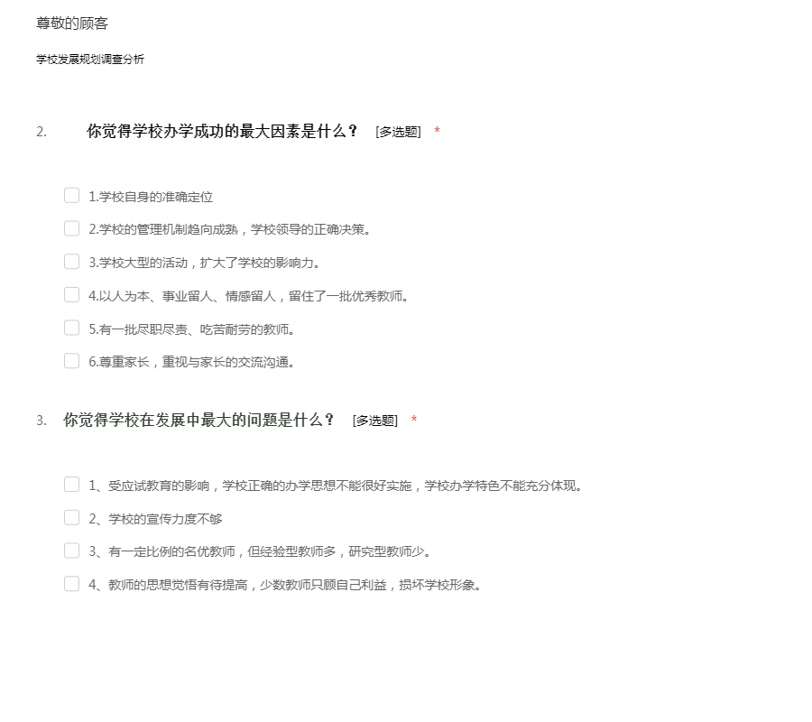 您好!为更好的了解我校的办学水平,了解家长对教育的需求,进一步提高服务质量,我们真诚邀请您参与我们的问卷调查(不记名调查),您的意见和建议是我们不断进步的永恒动力!