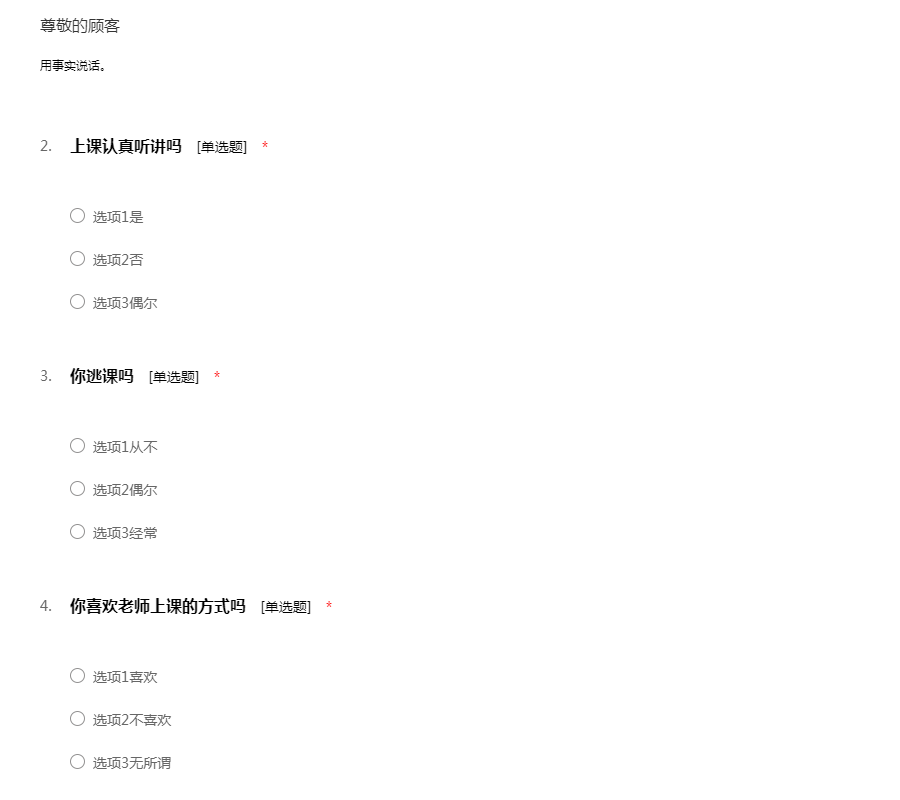 您好!为更好的了解我校的办学水平,了解家长对教育的需求,进一步提高服务质量,我们真诚邀请您参与我们的问卷调查(不记名调查),您的意见和建议是我们不断进步的永恒动力!