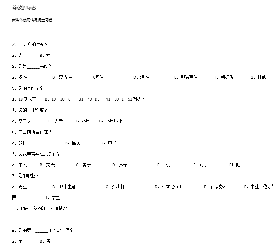 尊敬的女士/先生:您好!感谢您在百忙之中填写问卷,请您根据的实际感受和看法如实填写,本问卷采用匿名形式,所有数据仅供学术研究分析使用。敬祝身体健康,万事如意!