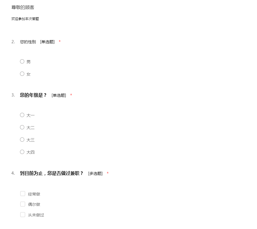 感谢你在百忙之中抽出一点时间填写这份调查问卷。