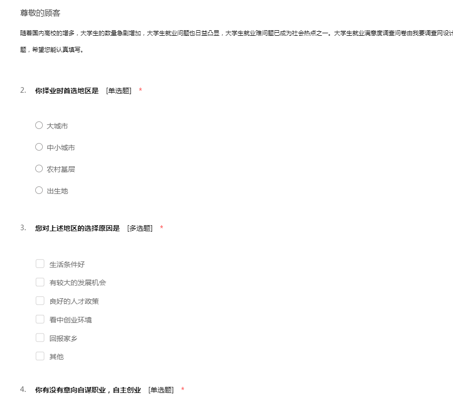 随着国内高校的增多,大学生的数量急剧增加,大学生就业问题也日益凸显,大学生就业难问题已成为社会热点之一。大学生就业满意度调查问卷由我要调查网设计,意在调查大学毕业生对所就业企业的满意度问题,希望您能认真填写。
