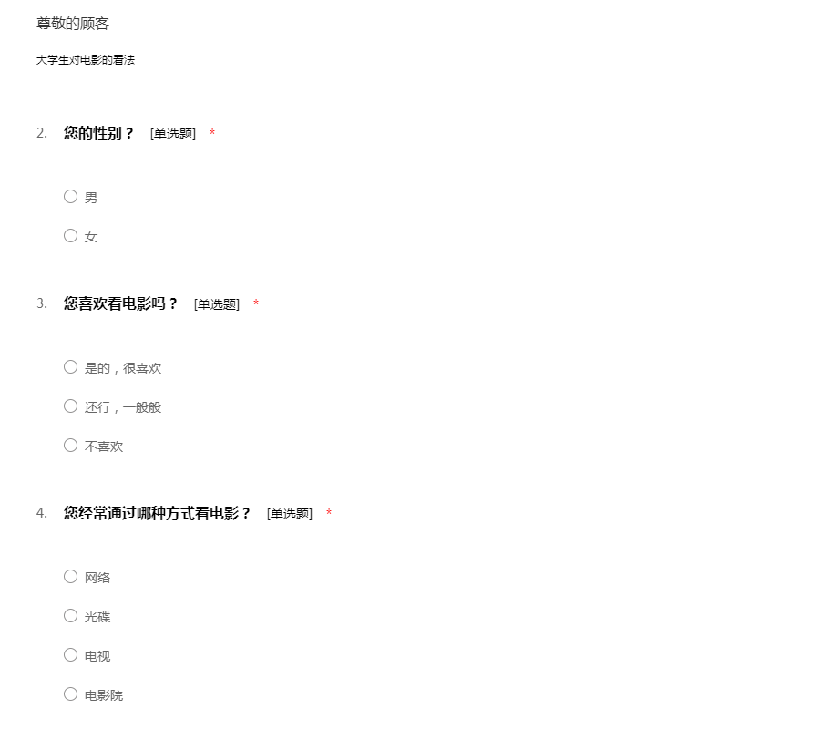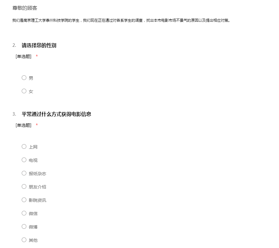 我们是南京理工大学泰州科技学院的学生,我们现在正在通过对各系学生的调查,找出本市电影市场不景气的原因以及提出相应对策。