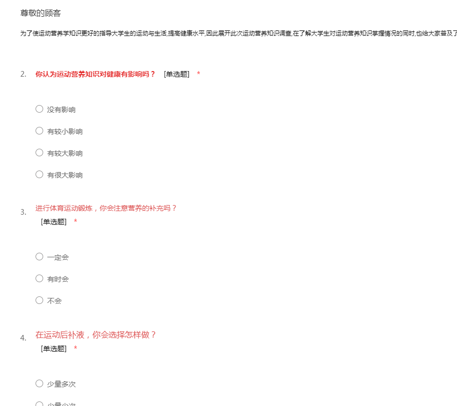 为了使运动营养学知识更好的指导大学生的运动与生活,提高健康水平,因此展开此次运动营养知识调查,在了解大学生对运动营养知识掌握情况的同时,也给大家普及了一些相关的基本知识。