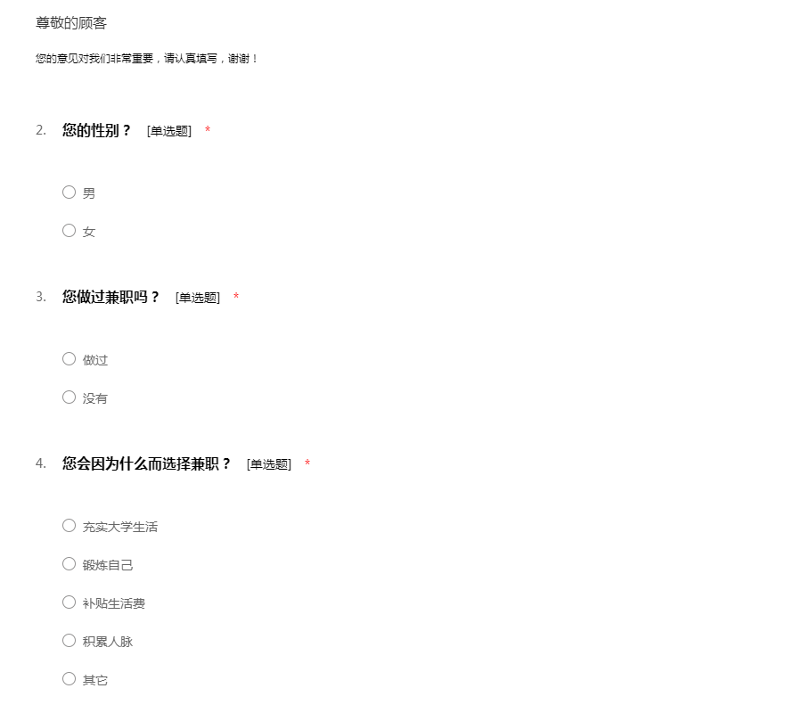 在校大学生兼职情况调查问卷