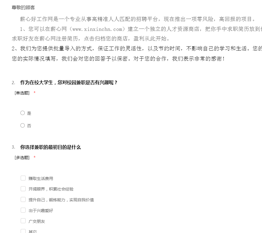 2、我们为您提供批量导入的方式,保证工作的灵活性,以及节约时间,不影响自己的学习和生活。您的回答不涉及对错,希望您能按您的实际情况填写,我们会对您的回答予以保密。对于您的合作,我们表示非常的感谢!