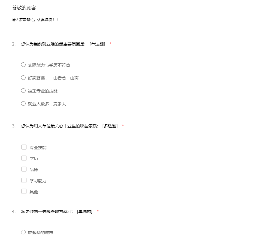 在这个竞争日益激烈的社会里,同学们的就业观也是多元化的,在这个教育影响日益增大的时代,大学生的就业观和就业行为严重地影响着社会经济的发展状况。因此,我们有必要对大学生的就业愿景进行一次调查,以达到一种引导和鼓励大学生们选择正确的就业观的目的。