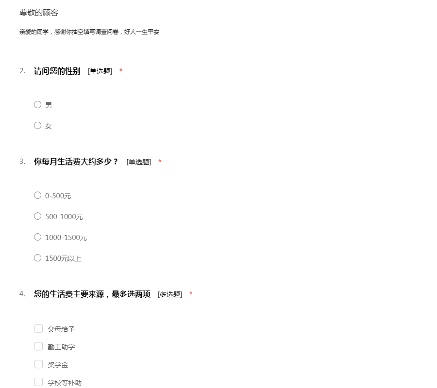 亲爱的同学,感谢你抽空填写调查问卷,好人一生平安