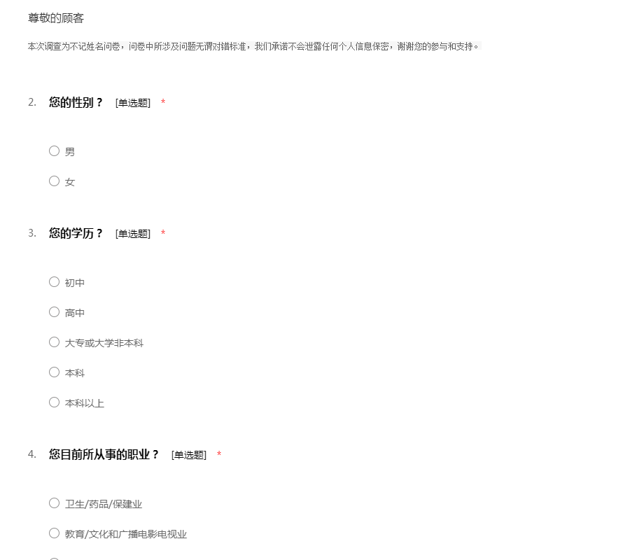 本次调查为不记姓名问卷,问卷中所涉及问题无谓对错标准,我们承诺不会泄露任何个人信息保密,谢谢您的参与和支持。
