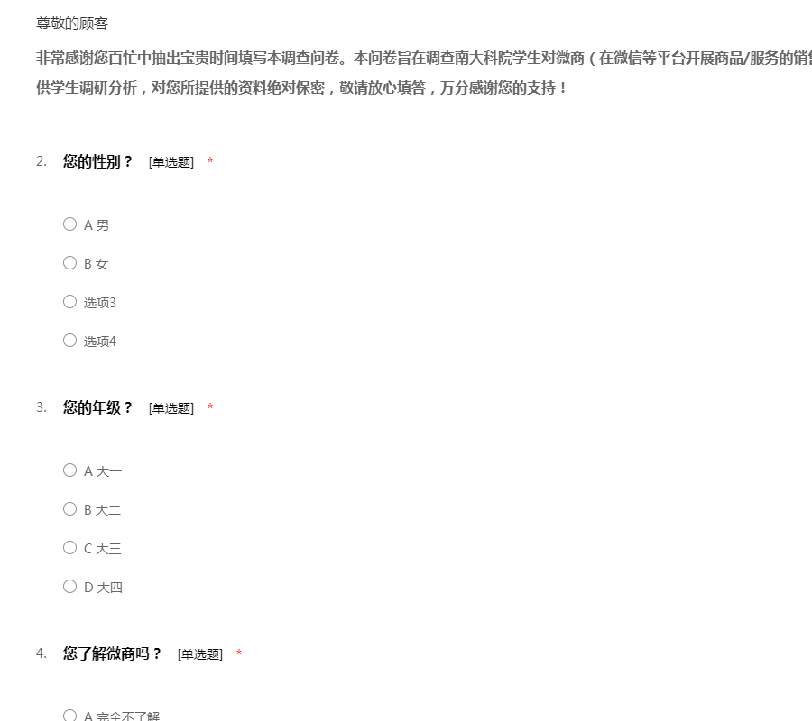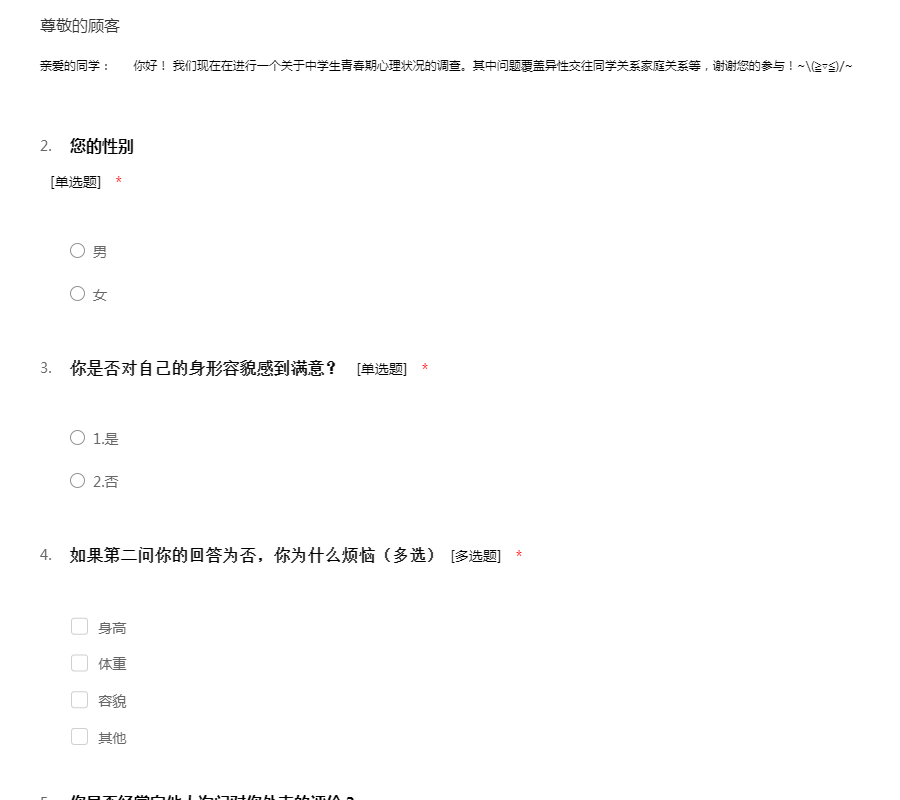 5、本问卷的资料仅作分析用,并不影响您的其它方面。