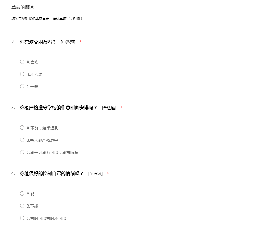 您好!为更好的了解我校的办学水平,了解家长对教育的需求,进一步提高服务质量,我们真诚邀请您参与我们的问卷调查(不记名调查),您的意见和建议是我们不断进步的永恒动力!