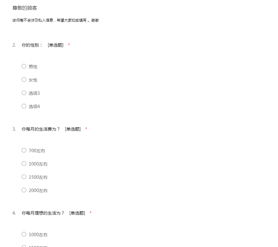 该问卷不会涉及私人信息,希望大家如实填写 。谢谢