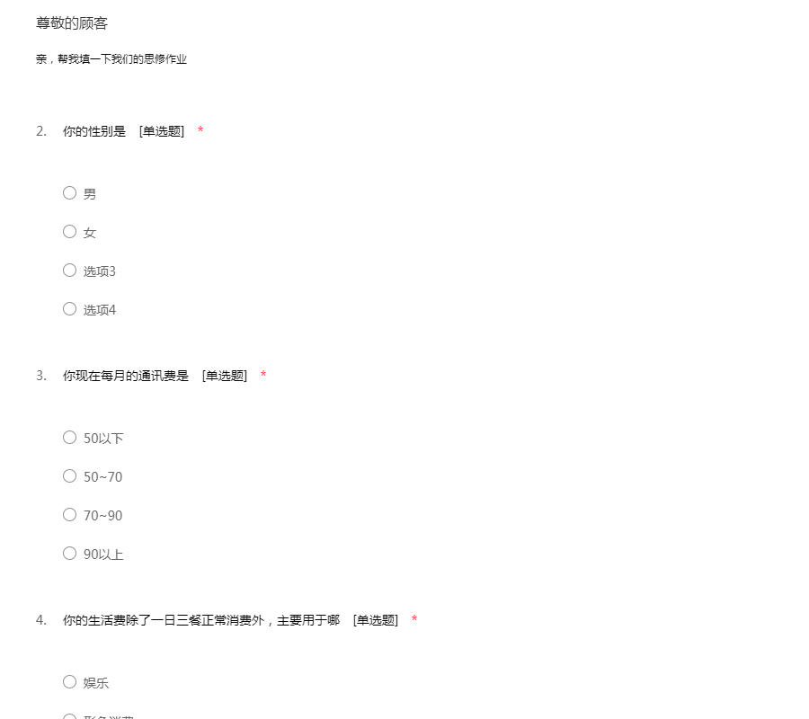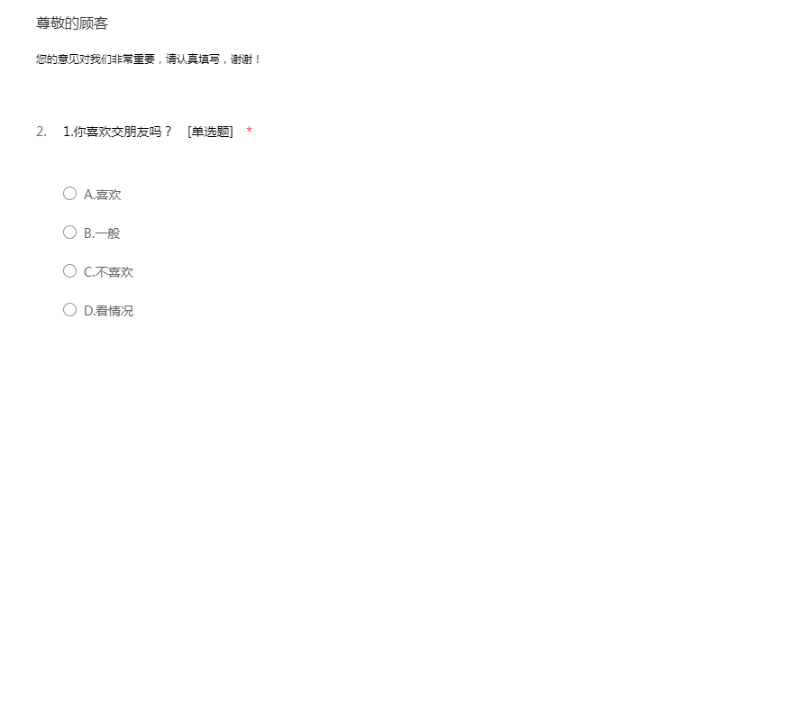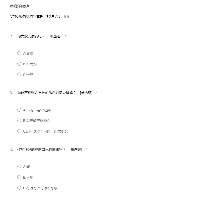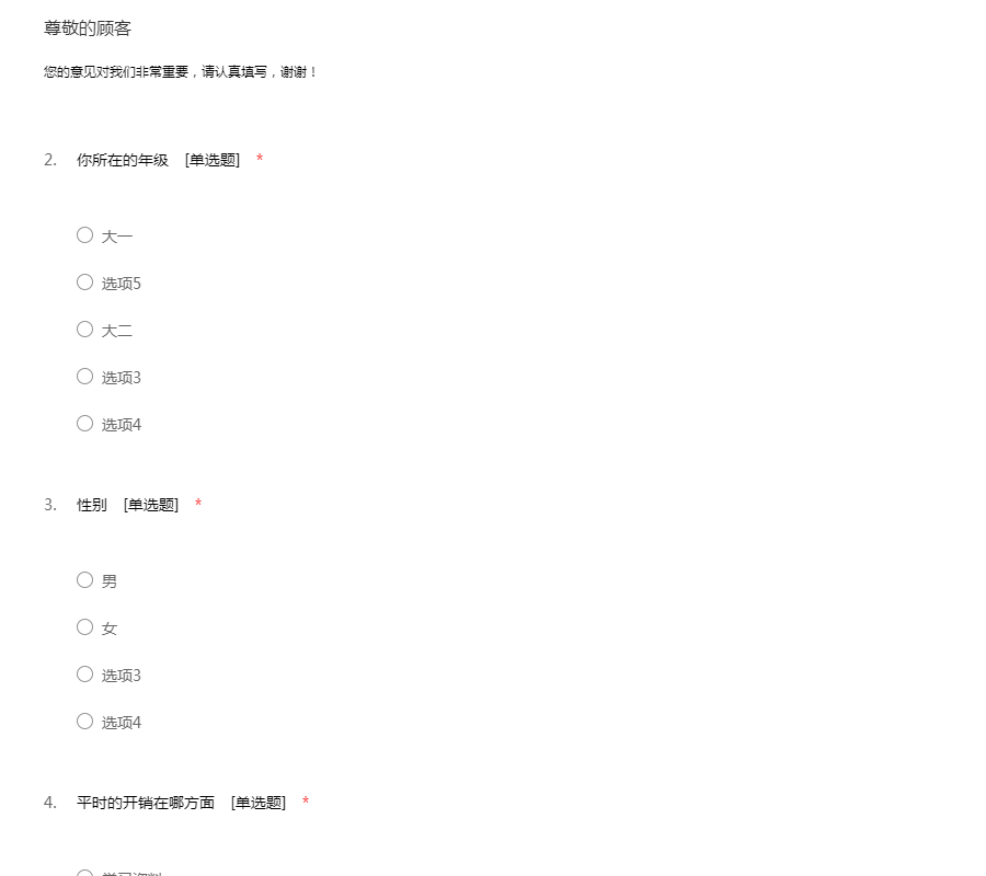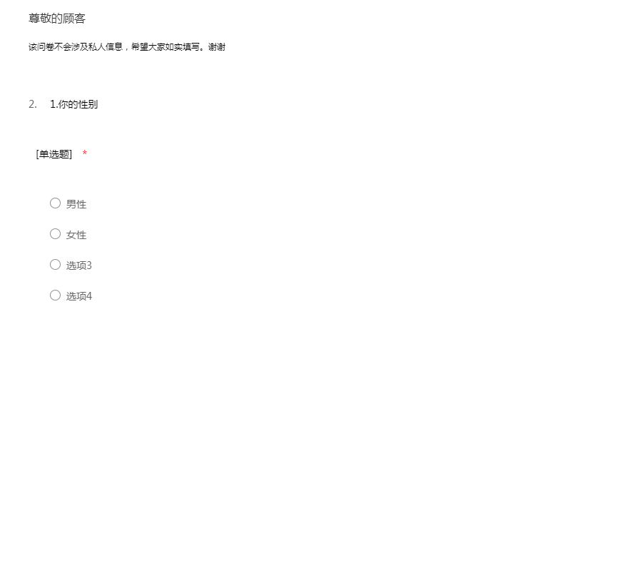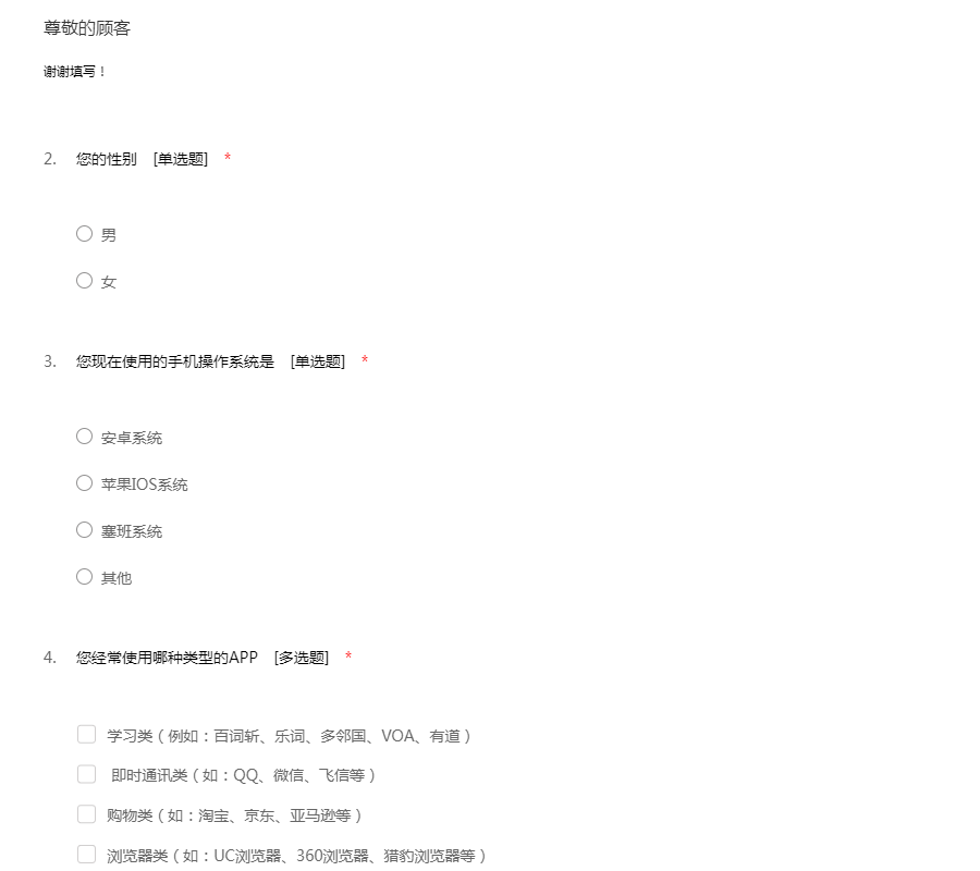 该问卷不会涉及私人信息,希望大家如实填写。谢谢
