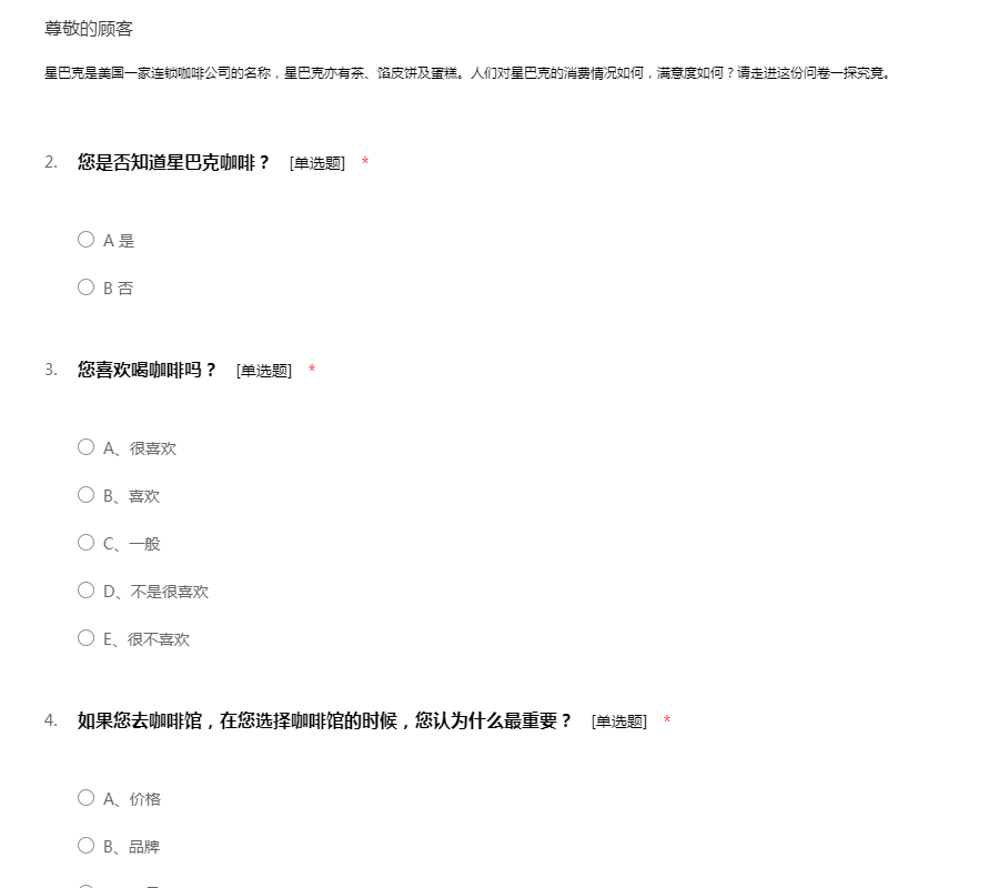 星巴克调查问卷