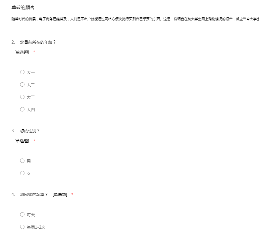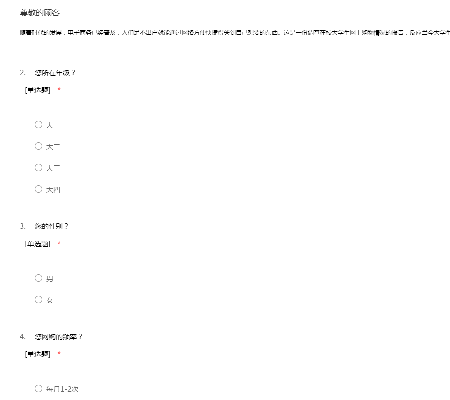 大学生网购调查问卷