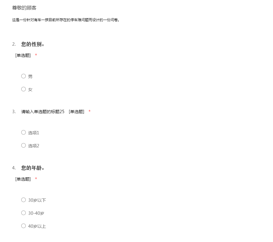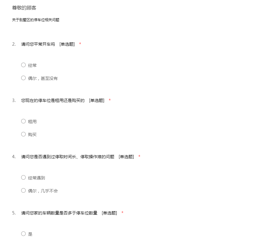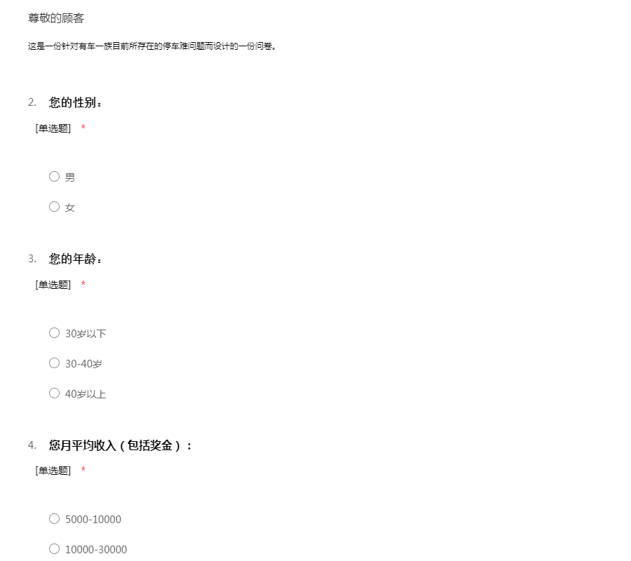 这是一份针对有车一族目前所存在的停车难问题而设计的一份问卷。