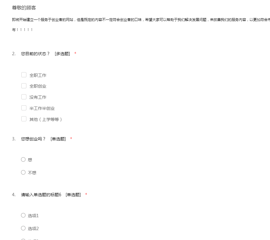 即将开始建立一个服务于创业者的网站,但是既定的内容不一定符合创业者的口味,希望大家可以帮助于我们解决发展问题,来改善我们的服务内容,以更加符合市场需求,更好的服务于创业者,感谢您的参与!!!!!