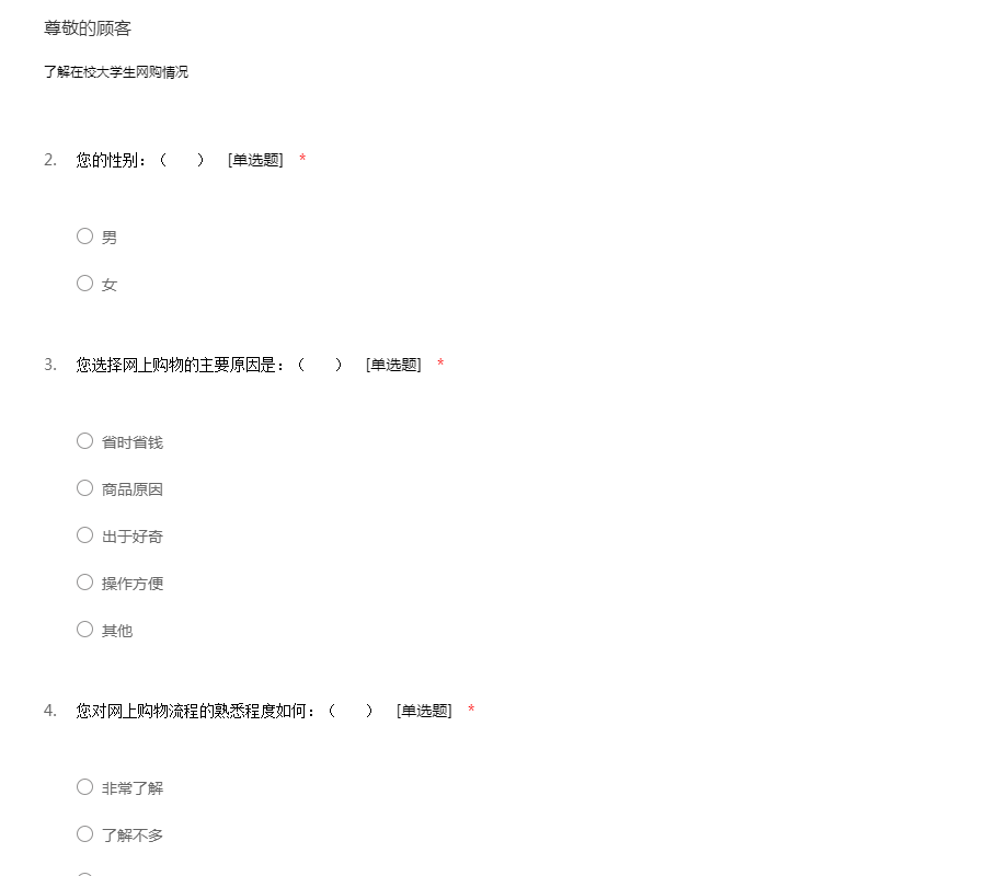 为了进一步了解我们当代大学生对消费观的认识,我们特别制定了这份调查问卷,以此来让当代大学生更清楚的认识自己,敬请您回答以下问题。