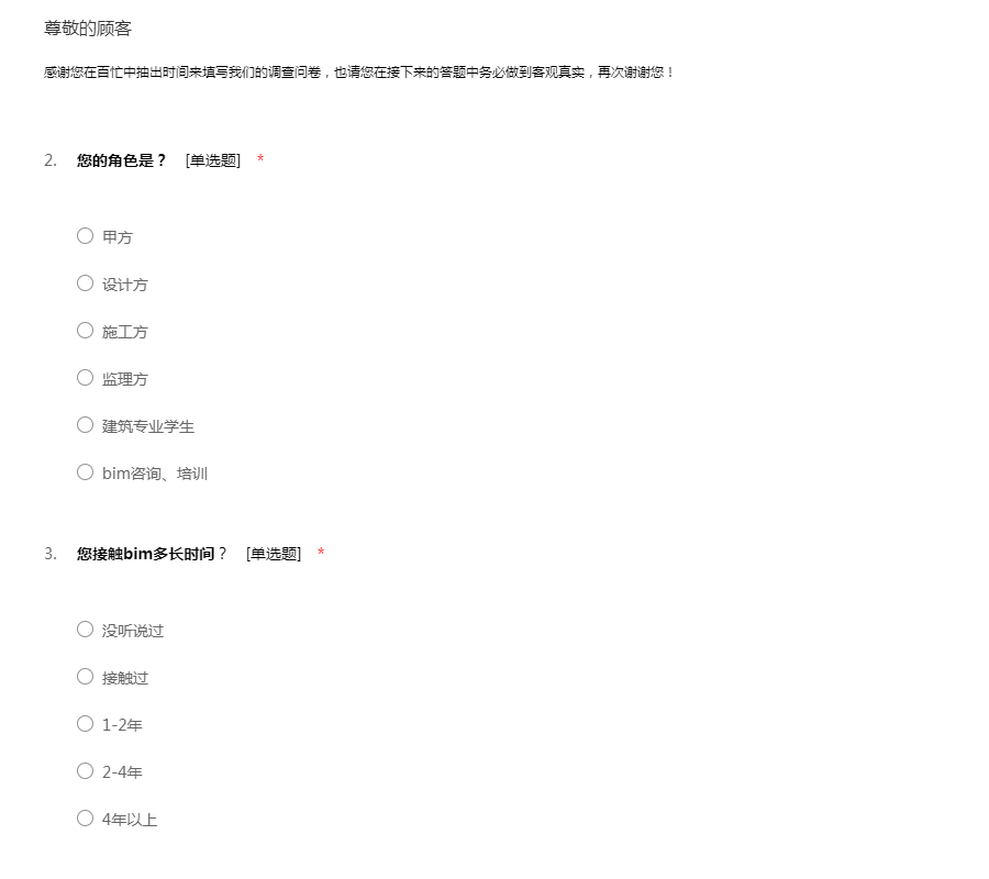 针对bim技术人才(或企业)的“bim”市场调查问卷