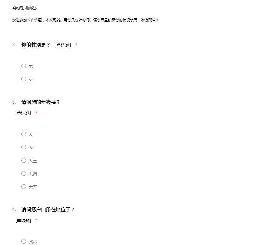 欢迎参加本次答题,本次可能占用您几分钟时间。请您尽量按照您的情况填写,谢谢配合!