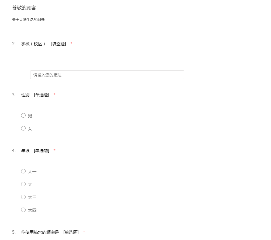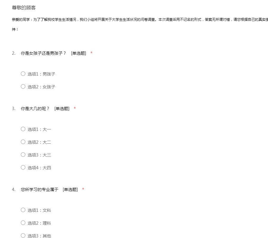 亲爱的同学:为了了解我校学生生活情况,我们小组将开展关于大学生生活状况的问卷调查。本次调查采用不记名的形式,答案无所谓对错,请您根据自己的真实情况,在符合的选项前打钩。感谢您的参与和支持!